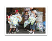 45リットルの袋で7袋以上まとまれば、お引取りにお伺いいたしますので、弊社までエコキャップ回収依頼書をお送り下さい。