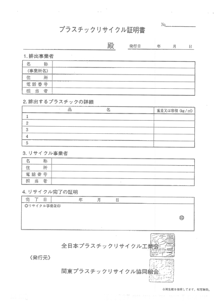 プラスチックリサイクル証明書の発行について